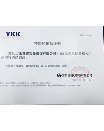 寶晨與國際知名品牌YKK簽約成為長期合作伙伴,致力于經(jīng)營YKK出品的各種拉鏈;
