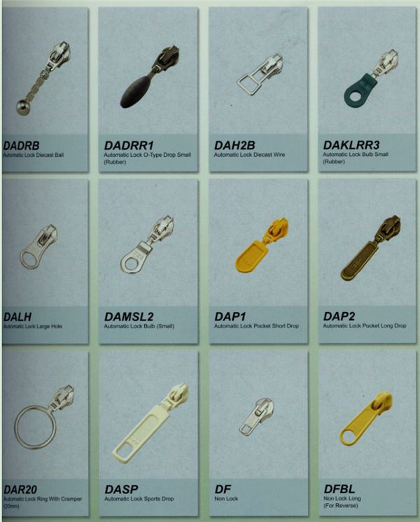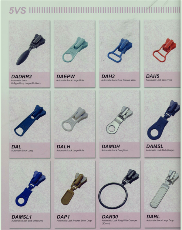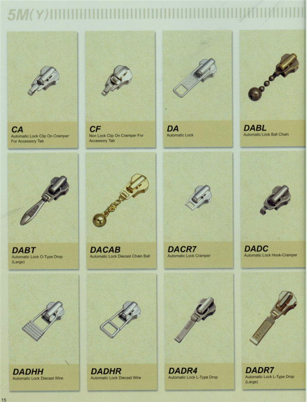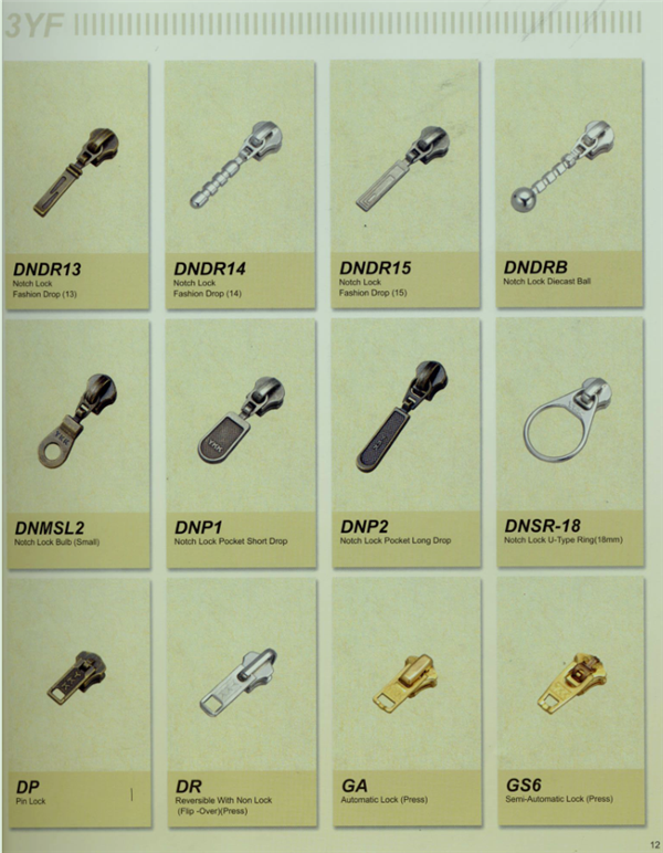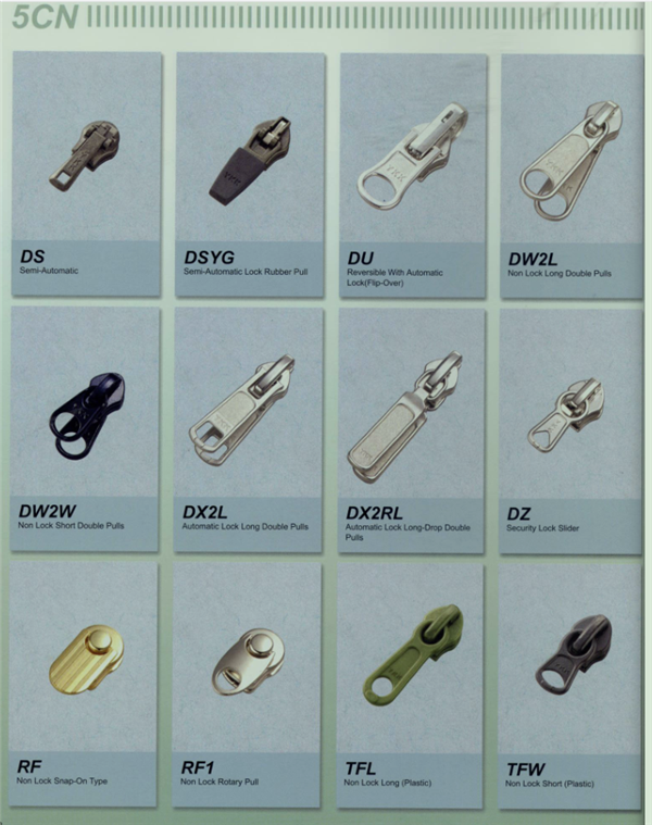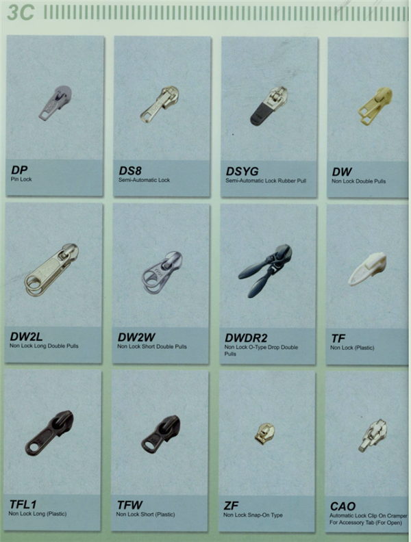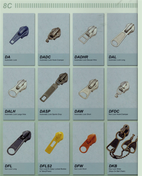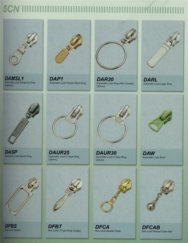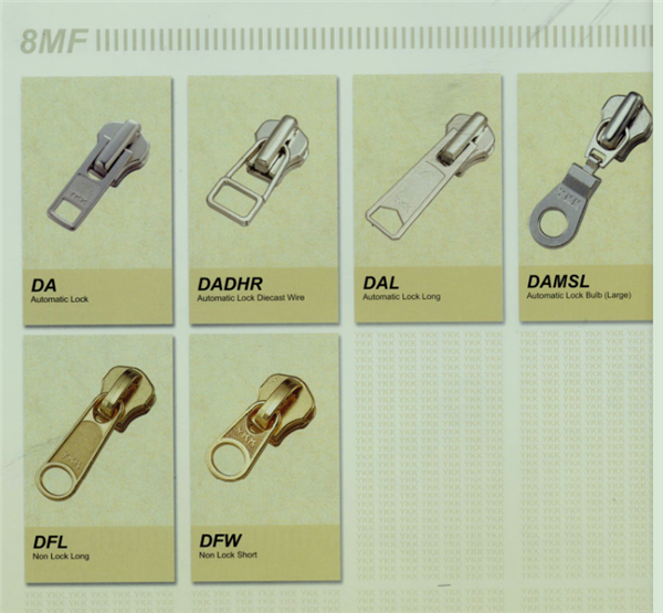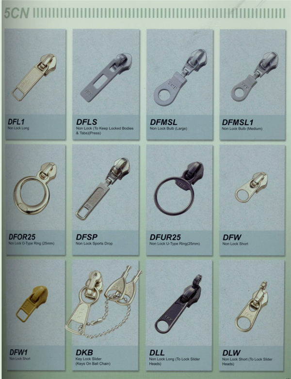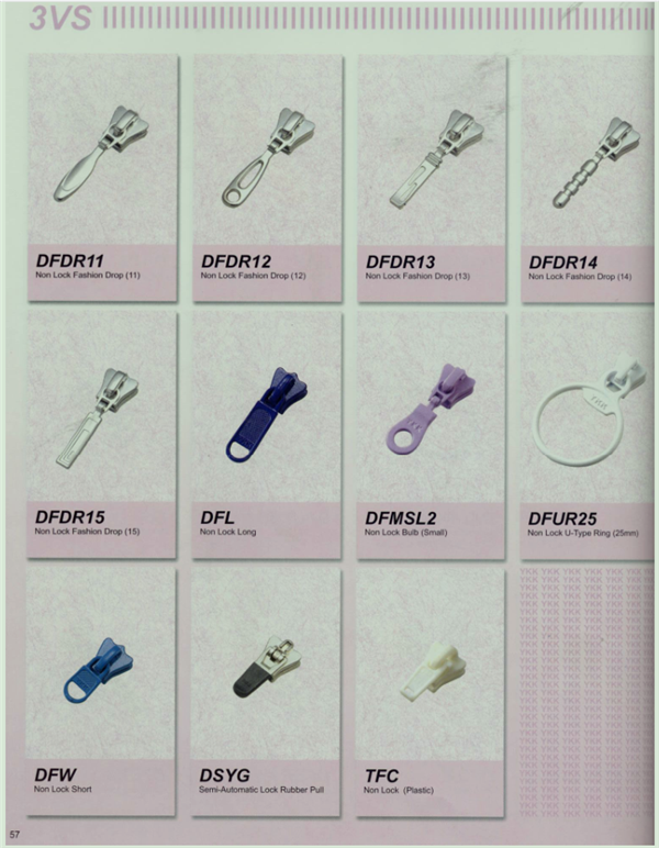 YKK樹脂牙拉鏈及拉頭、YKK金屬牙拉鏈及拉頭、YKK Y牙牛仔系列拉鏈等。