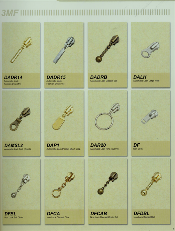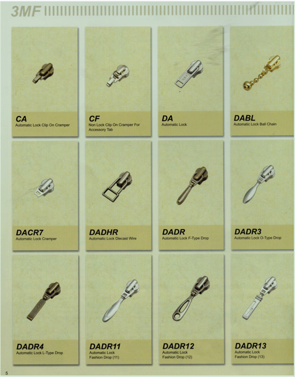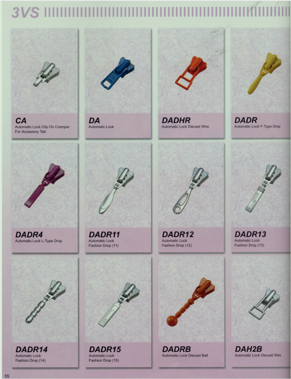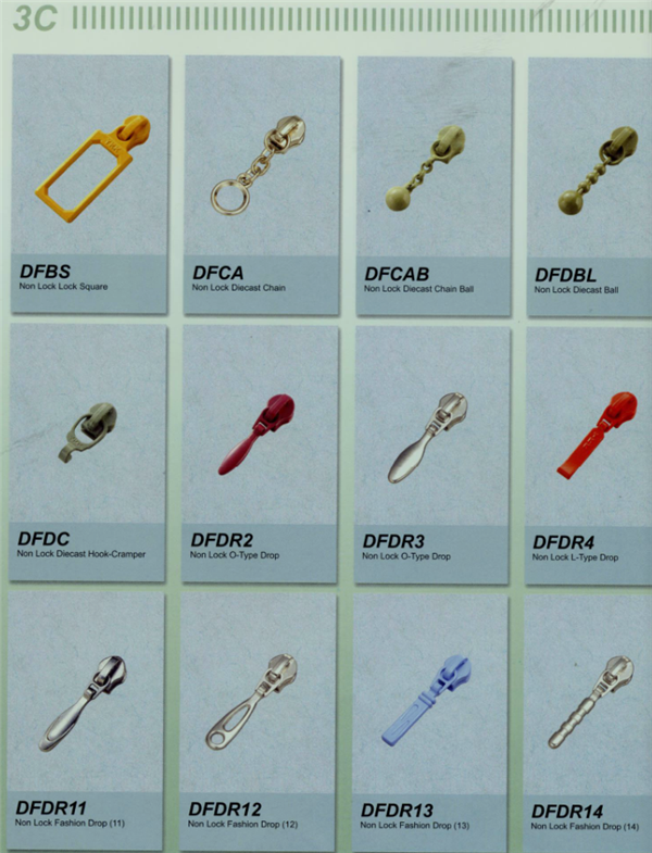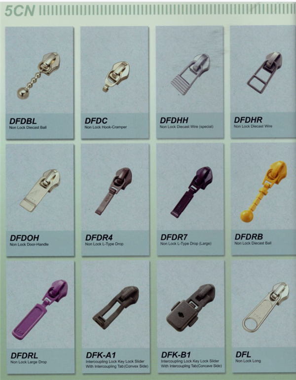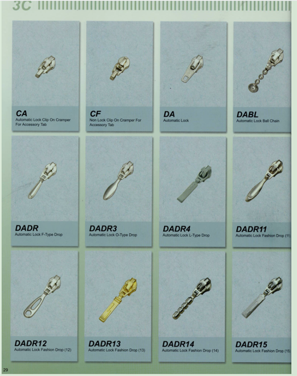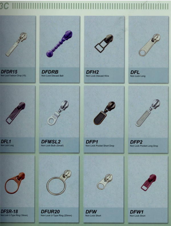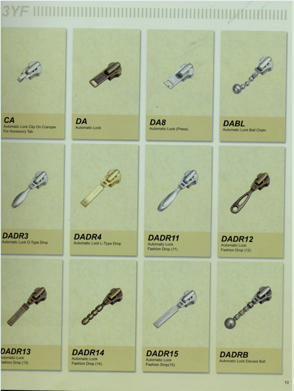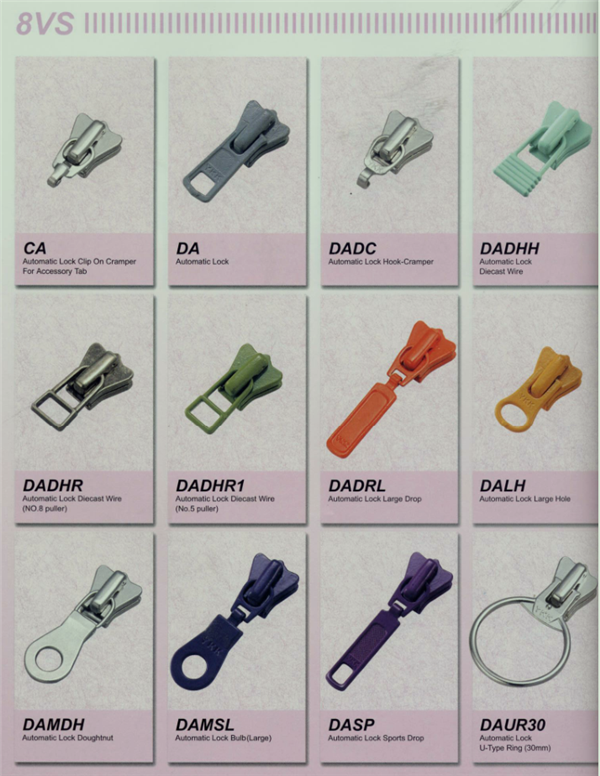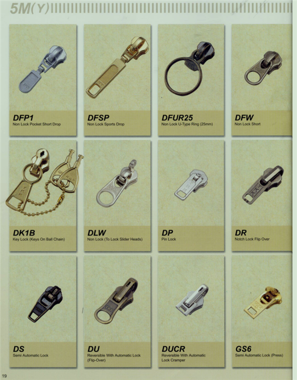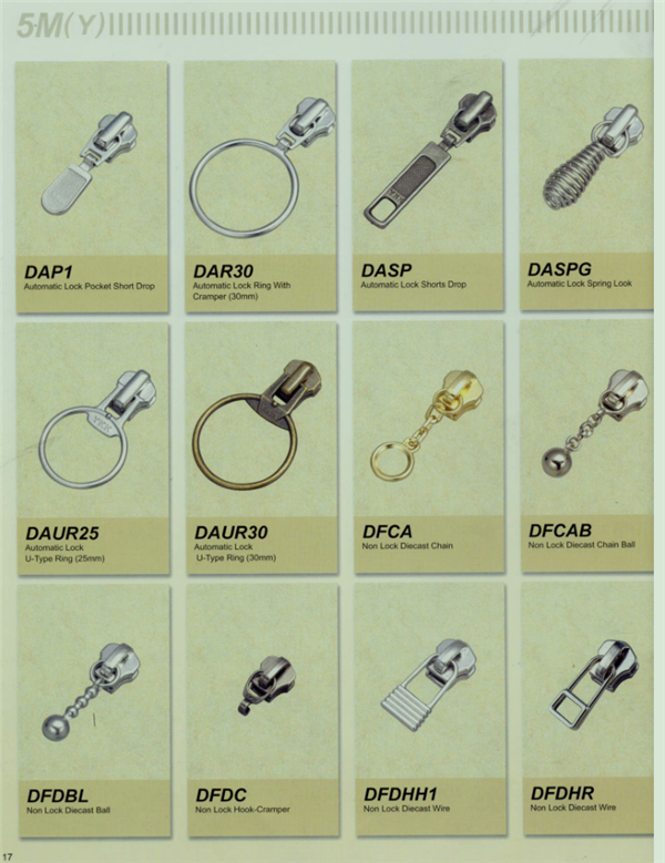 YKK樹脂牙拉鏈及拉頭、YKK金屬牙拉鏈及拉頭、YKK Y牙牛仔系列拉鏈等。