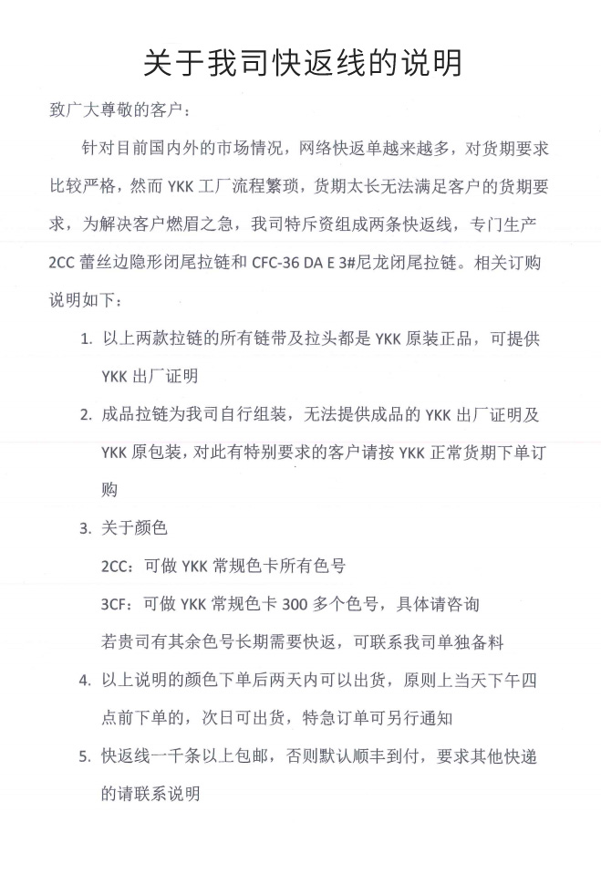 關(guān)于我司快返線的說明.........